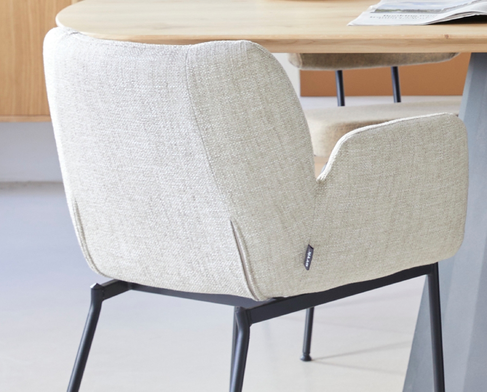 Eetkamerstoel Falco op dop straalt speelsheid uit en biedt optimaal comfort. Het zachte zitgedeelte zorgt voor een fijne zitervaring, terwijl de armleuningen uitnodigen om ontspannen te rusten. De stevige rugleuning ondersteunt een rechte zithouding, waardoor lange diners extra comfortabel worden. Met zijn elegante uitstraling is Falco een fauteuil in de vorm van een eetkamerstoel – ideaal voor urenlang natafelen!